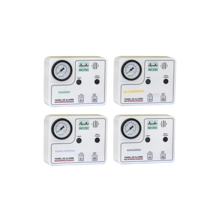 O painel de alarme foi desenvolvido para monitorar e sinalizar por meio de alarmes audiovisuais a queda de pressão de uma rede de gases medicinais. O acionamento é gerado por um sistema de pressostato calibrado, que com auxilio de um circuito microprocessado, pode detectar qualquer variação na pressão da rede de gases e é acionado imediatamente o alarme.